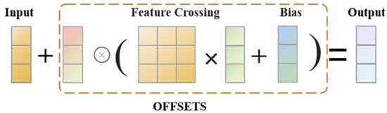 Schematic diagram of the DCNv2 structure. Note: The term “Feature Crossing” in the figure denotes the feature interaction mechanism within the model, which is used to generate feature cross terms. “Bias” refers to the learnable bias term in the model, which is used to adjust the model output.
