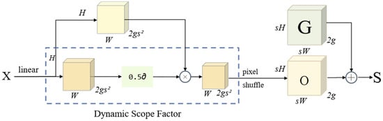 In this study, DySample is integrated into the feature extraction stage to enhance the overall computational efficiency of the model. Specifically, it replaces traditional sampling modules in the main data flow branch through class inheritance, resulting in reduced computational cost and memory consumption during feature map scaling. This substitution further contributes to the lightweight design of the model while effectively preserving detection accuracy. The structure of the DySample module is shown in Figure 6.