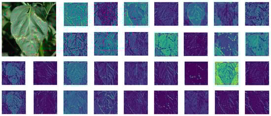 As can be observed from Figure 8, with the gradual deepening of the number of network layers, the features extracted in each layer undergo a shift from concrete to abstract. Specifically, the activation output of the initial layer retains more of the original visual content information of the image, which is gradually compressed and abstracted as the layers are incremented to focus more on category-related feature information. This demonstrates how the deformable convolutional module DCNv2 can enhance the recognition of targets by gradually building up target features [28]. The feature map is shown in Figure 8.