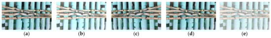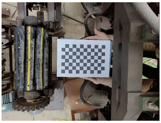 To establish an effective imaging model, camera calibration was performed using Zhang’s calibration method [28]. Calibration and correction were carried out by capturing multiple images of the calibration board from different angles, as shown in Figure 8.
