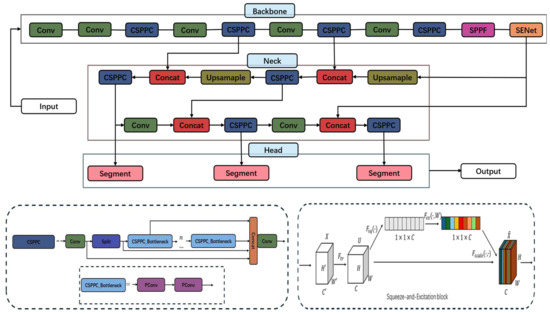 - The C2f module used by YOLOv8n-seg has a large number of parameters and high computational complexity, leading to redundancy in channel information. To address these issues, the CSPPC module replaces the C2f module to reduce redundant channels and extract richer features through multi-scale pooling.