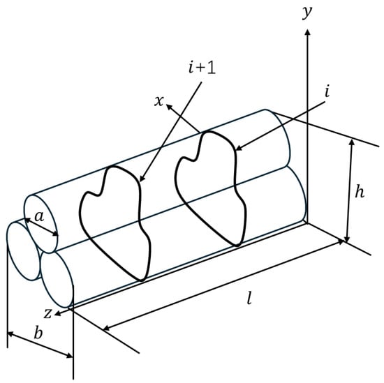 Among them, is the diameter of a single sugarcane at the top or the sum of the diameters of multiple sugarcanes at the top layer; is the length of the bottom surface; and is the slice height or the stacking height minus the sugarcane radius. In summary, the cross-sectional area at the i-th position can be calculated using Formulas (9) and (10).