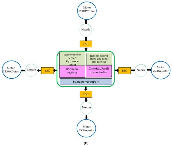 Applying herbicides at variable rates based on specific areas is preferable to uniform application when controlling prevailing weeds and plant diseases in farmers’ fields [9]. Uniform application of agrochemicals often leads to excessive use of harmful chemicals, increased crop production costs, environmental damage, health risks, and reduced sprayer efficiency [15]. Intelligent variable rate sprayers incorporate electronic and automated systems in agricultural machinery, enhancing the efficiency of agrochemical applications [16]. These sensor-based control systems allow for the precise application of chemicals only as needed, reducing waste and environmental impact. Many researchers have developed vision-based spot applicators for real-time weed detection, utilizing various remote sensing devices. Vision-based algorithms have been applied to create variable rate systems for target detection using Raspberry Pi and OpenCV in drone systems. Machine learning-based systems have shown high accuracy in real-time target detection [17,18,19,20,21,22,23,24].
