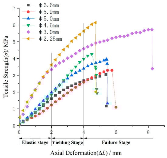 | Sample Diameter (D/mm) | Sample Length (L/mm) | Loading Speed (V/mm·min−1) | Tensile Force (FN/N) | Tensile Strength (σ/MPa) | |