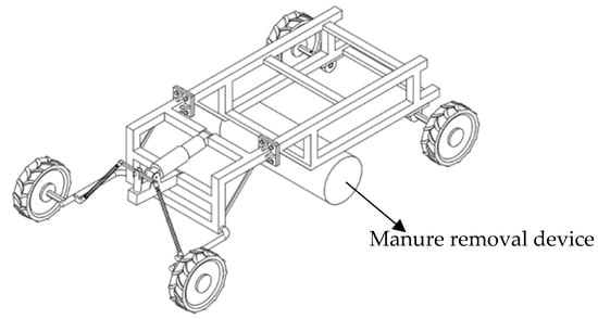 The global scale of livestock and poultry farming grows year over year. For example, the annual production output of broilers around the world for the year 2024 exceeded 100 million metric tons, which put more pressure on the livestock manure management field []. The invention of excrement treatment machines thus has an important role in contemporary livestock farming. Manure cleaning machines used by broiler farms are not rare as the huge amount of excreta generated during broilers’ repeated trampling compacts with feathers, forming layers that are low to the ground and essentially impossible to get rid of by hand. Manure on farms is continuously giving off highly pungent and harmful gases like ammonia, nitrogen, and hydrogen sulfide, which, on one hand, directly threaten broilers’ respiratory health and worsen the farm’s environment []. On the other hand, long-term accumulation of these wastes outdoors exposes them to the air, resulting in their conversion into volatile, odorous compounds like methyl sulfide, dimethyl sulfide, and methyl mercaptan through multi-faceted biochemical processes. Consequently, they contribute to regional environmental pollution []. Even more worrisome, keeping manure over a long time becomes a place where pathogenic microorganisms proliferate, thereby elevating the disease risk in livestock populations and threatening the profitability as well as the biosecurity of the farming sector [,].