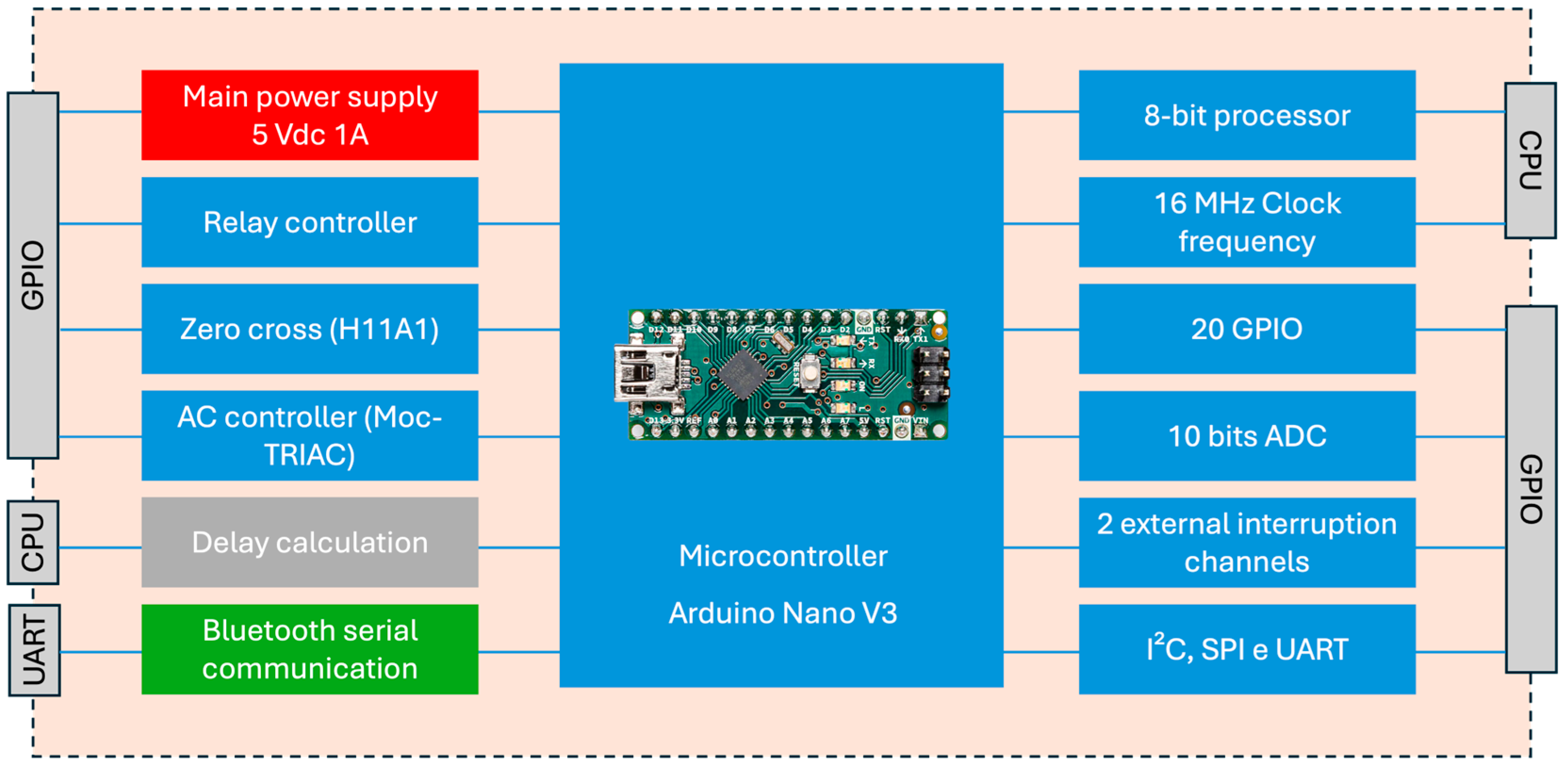 - Mathias, L.C.; Castanha, L.M.G.; de Oliveira, A.V.; Kuhn, E.V. Assessment of Phase Control and Time-Proportional Control Schemes for TRIAC Applications. J. Control Autom. Electr. Syst. 2023, 34, 1272–1283. [Google Scholar] [CrossRef]