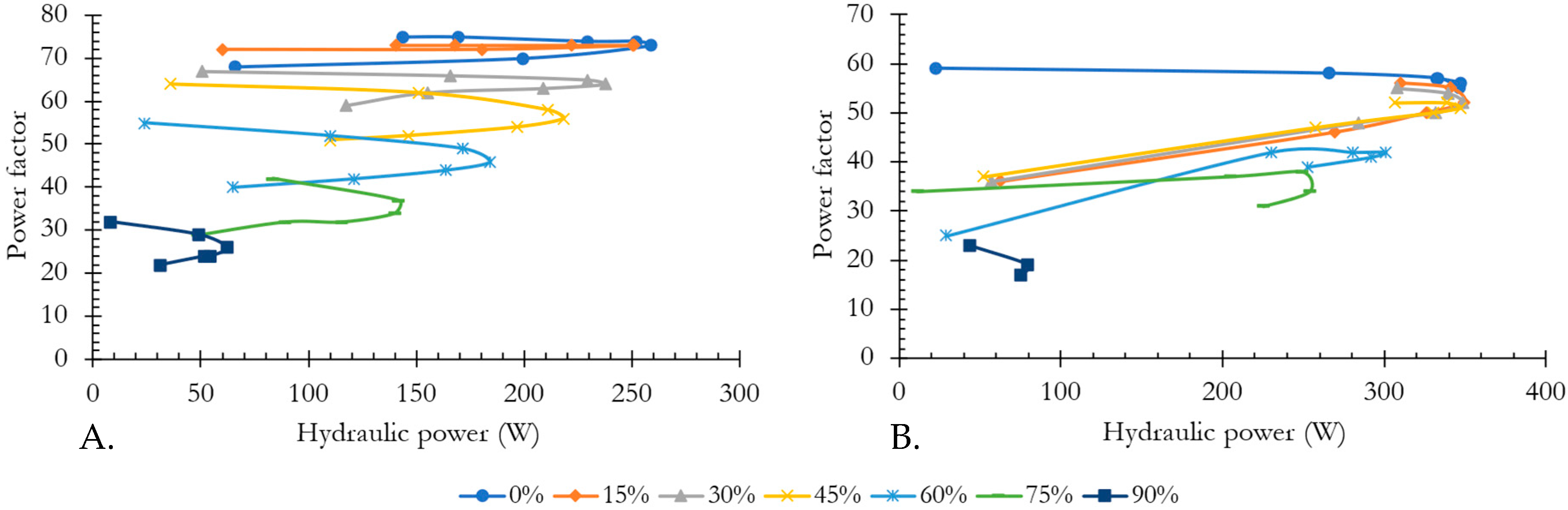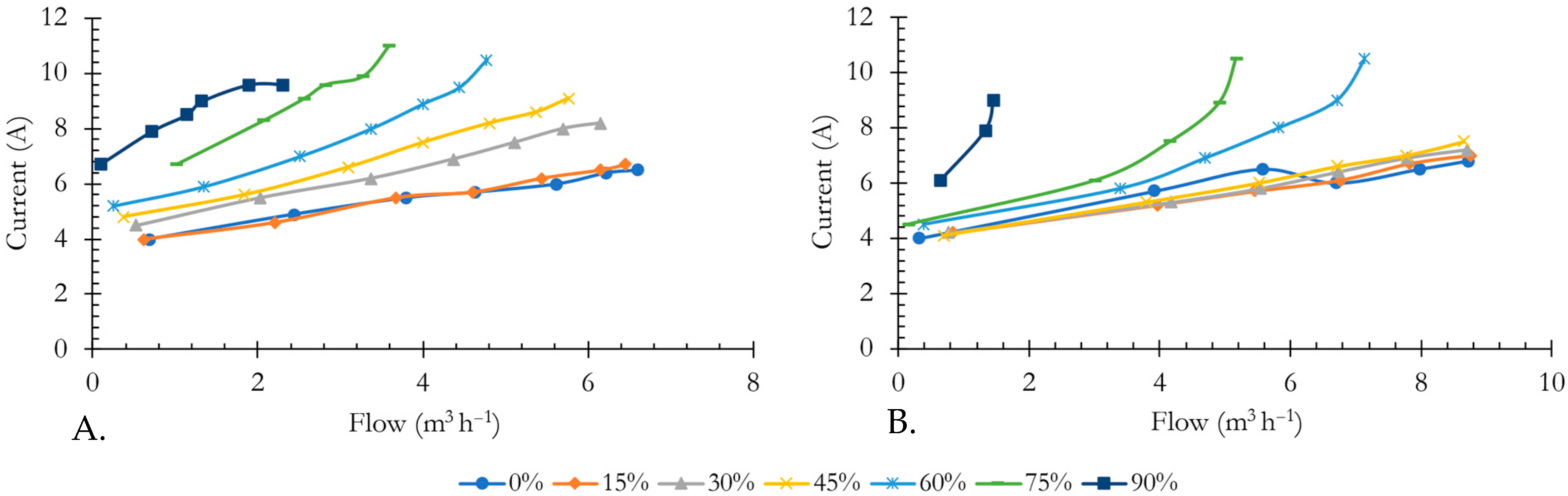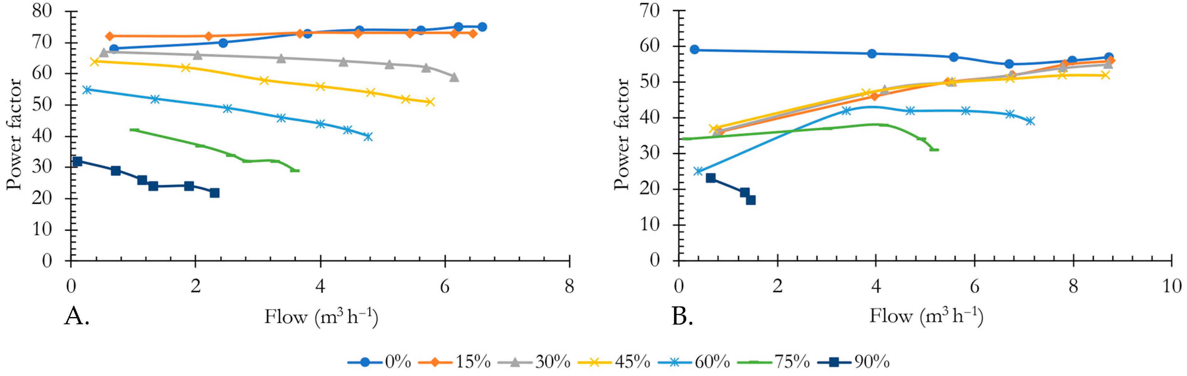 2.5. Experimental Tests: Electrical and Hydraulics Performance of Motor Pumps Under Firing Angle Control
