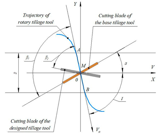 Thus, the cutting blades of the designed tillage tool, oriented at an acute angle β to the vector of absolute velocity Va, should feature elliptical profiles with curved cutting edge.