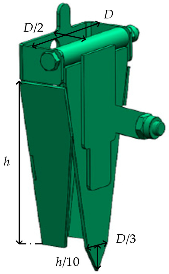 Assuming a prismatic duckbill with a longitudinal width of D and transverse width of D/2 at the seed inlet, and a tip width of D/3 with a tip height of h/10 at the bottom. Given the maximum penetration depth H is identical to that of the aforementioned wedge-shaped and conical duckbills, the projected pressure-bearing area during soil penetration is calculated as follows: