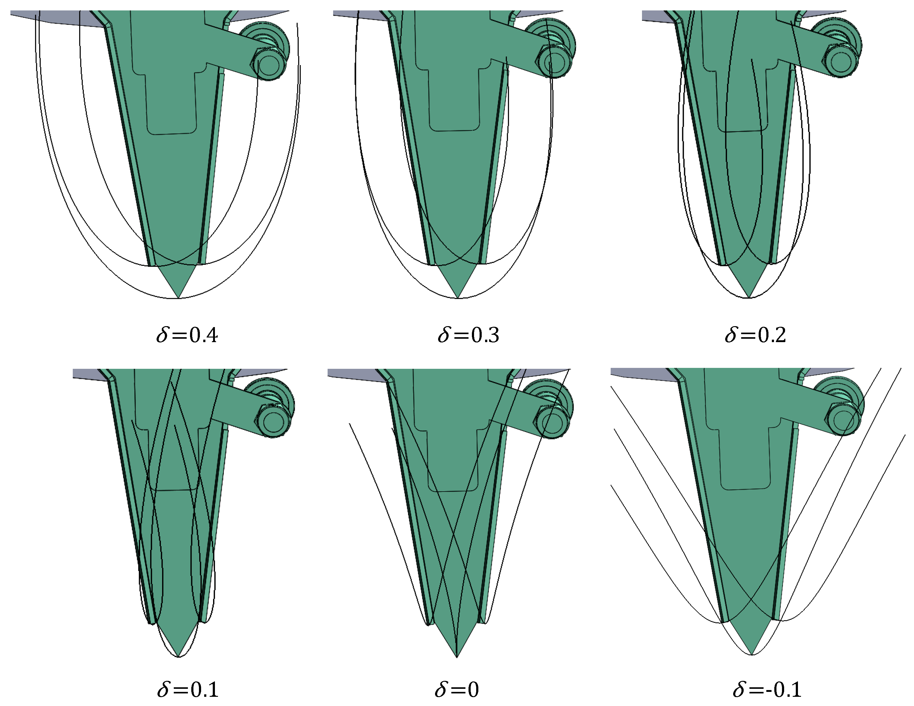16]. The theoretical cavity profile was modeled by simulating the swept area of the soil-engaging duckbill portion, with the maximum longitudinal dimension of the ground-crossing section measured as the theoretical cavity length.