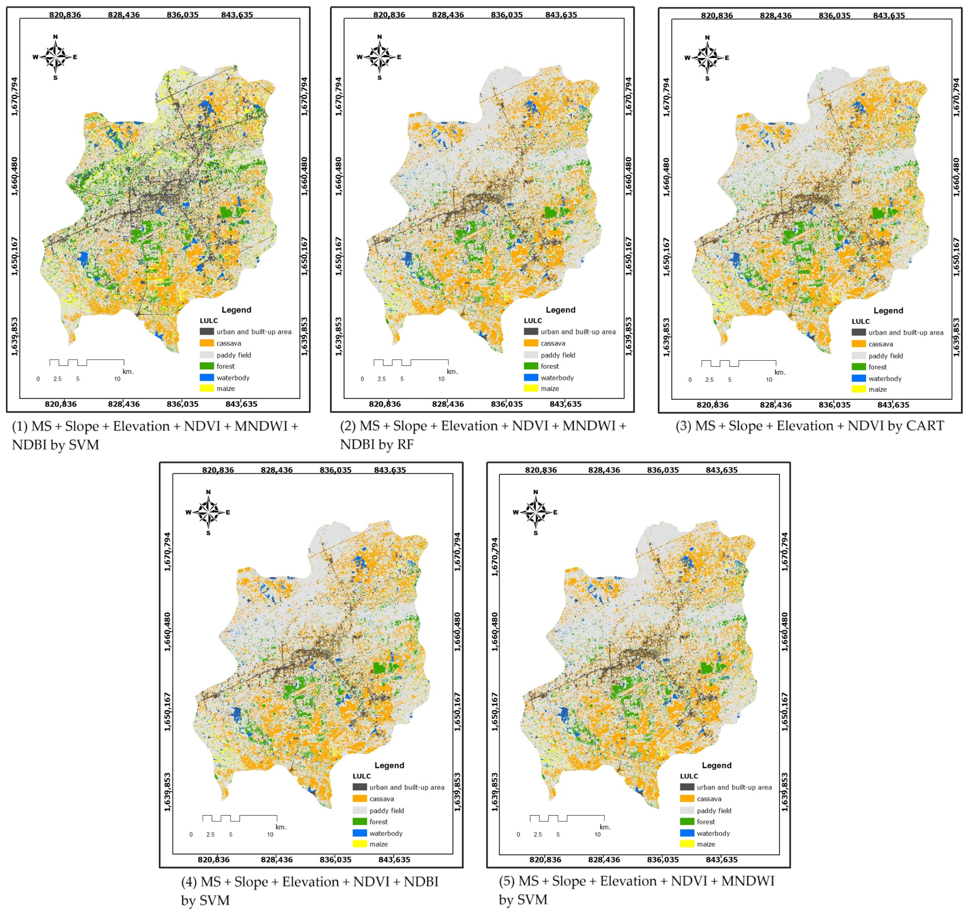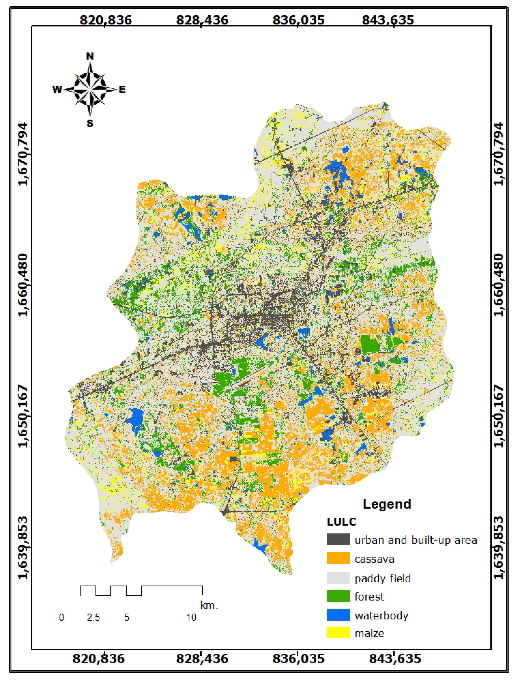 - Intarat, K. Land Use Classification in Nakhon Nayok Province Using Machine Learning Algorithms and Sentinel-2 Image. Burapha Sci. J. 2022, 27, 1153–1171. [Google Scholar]
