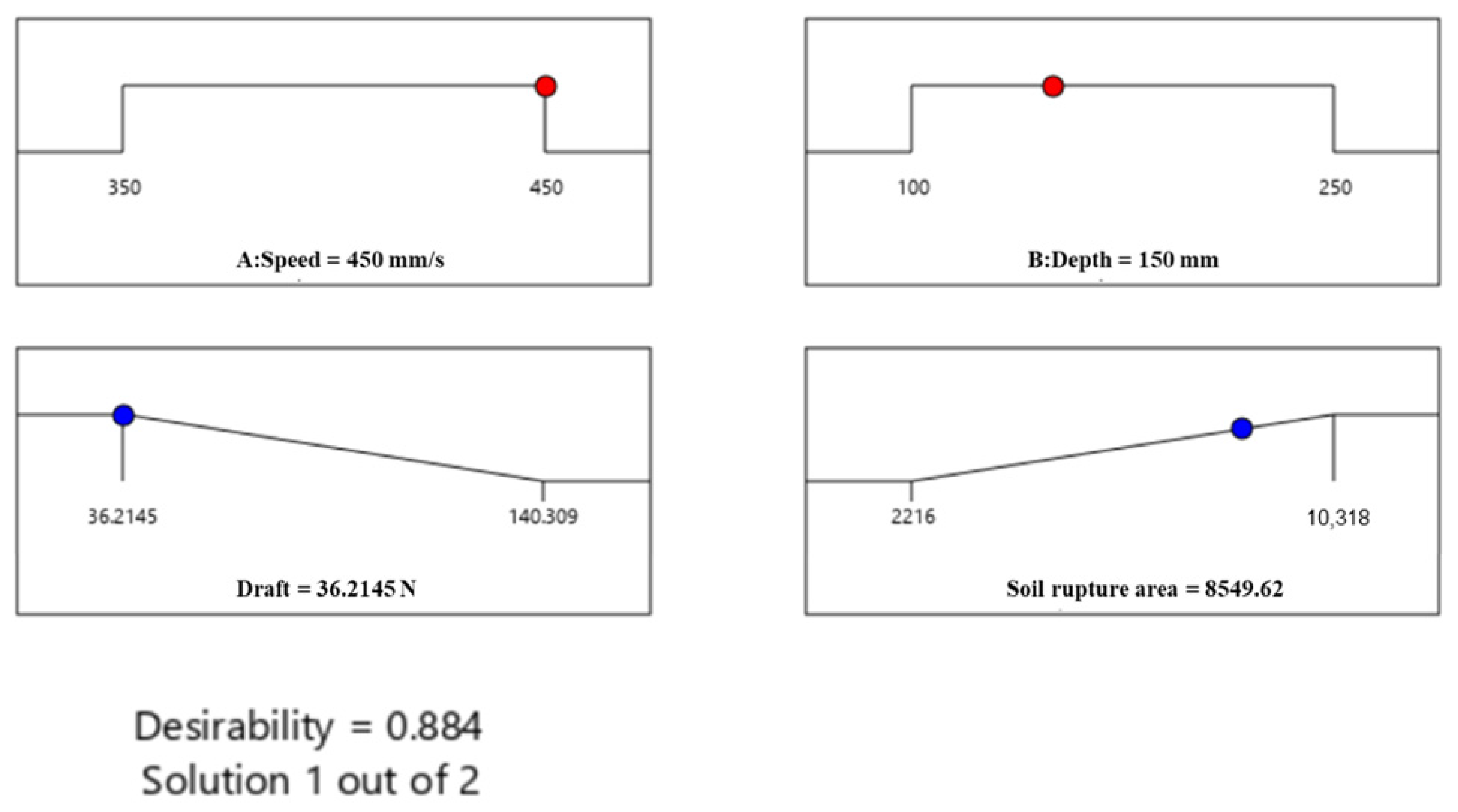 3.4. Operational Optimization for the Injector Shank Based on Simulation Draft and Soil Rupture Area Results