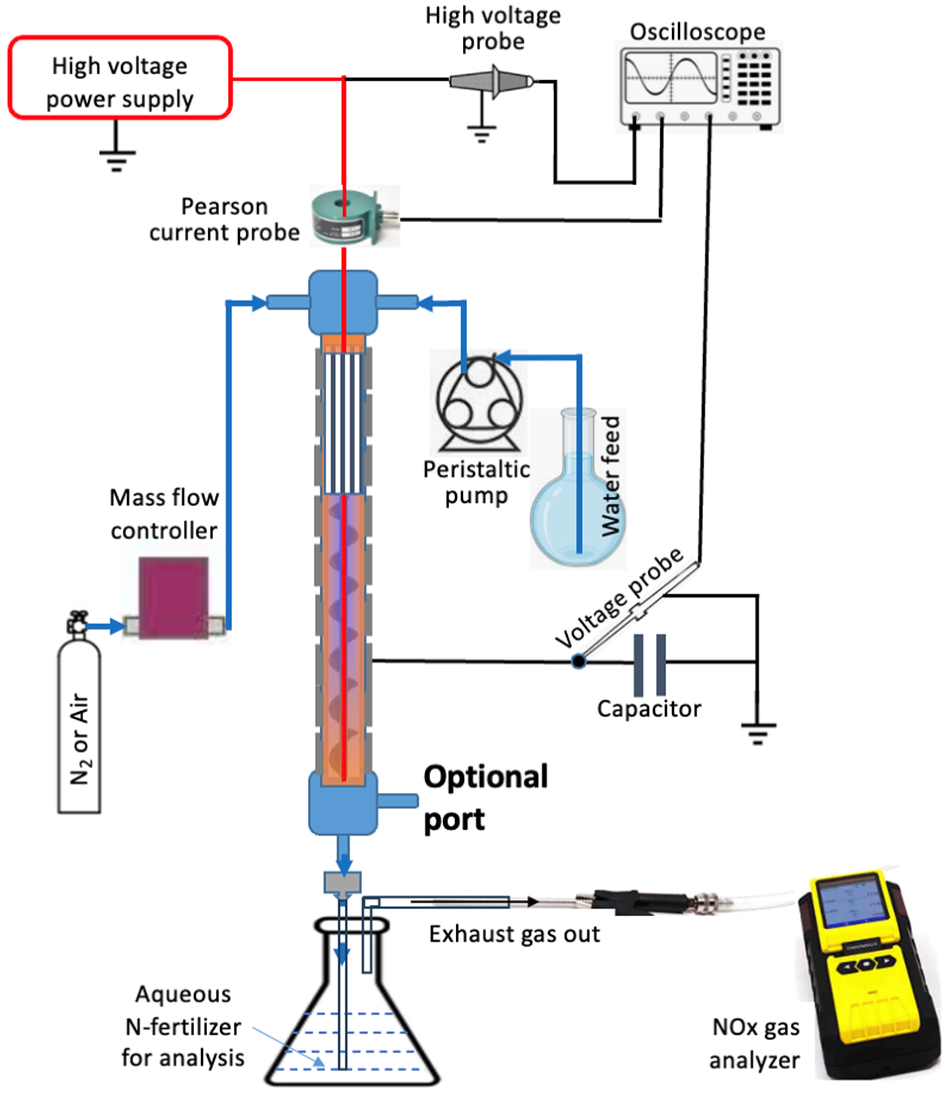 - Toth, J.R.; Abuyazid, N.H.; Lacks, D.J.; Renner, J.N.; Sankaran, R.M. A Plasma-Water Droplet Reactor for Process-Intensified, Continuous Nitrogen Fixation at Atmospheric Pressure. ACS Sustain. Chem. Eng. 2020, 8, 14845–14854. [Google Scholar] [CrossRef]