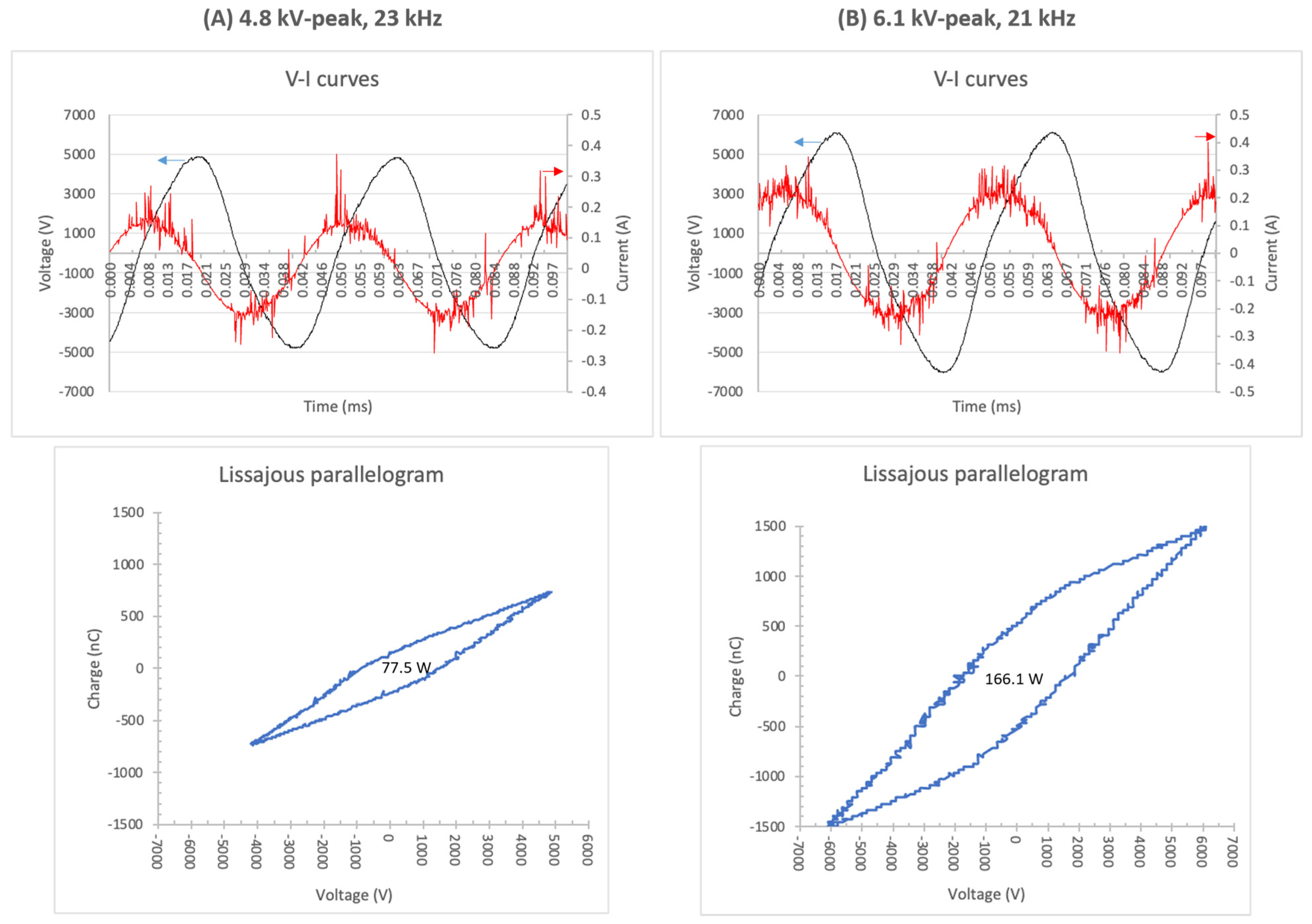 3.2. Characteristics of the DBD Plasma and Power Measurement