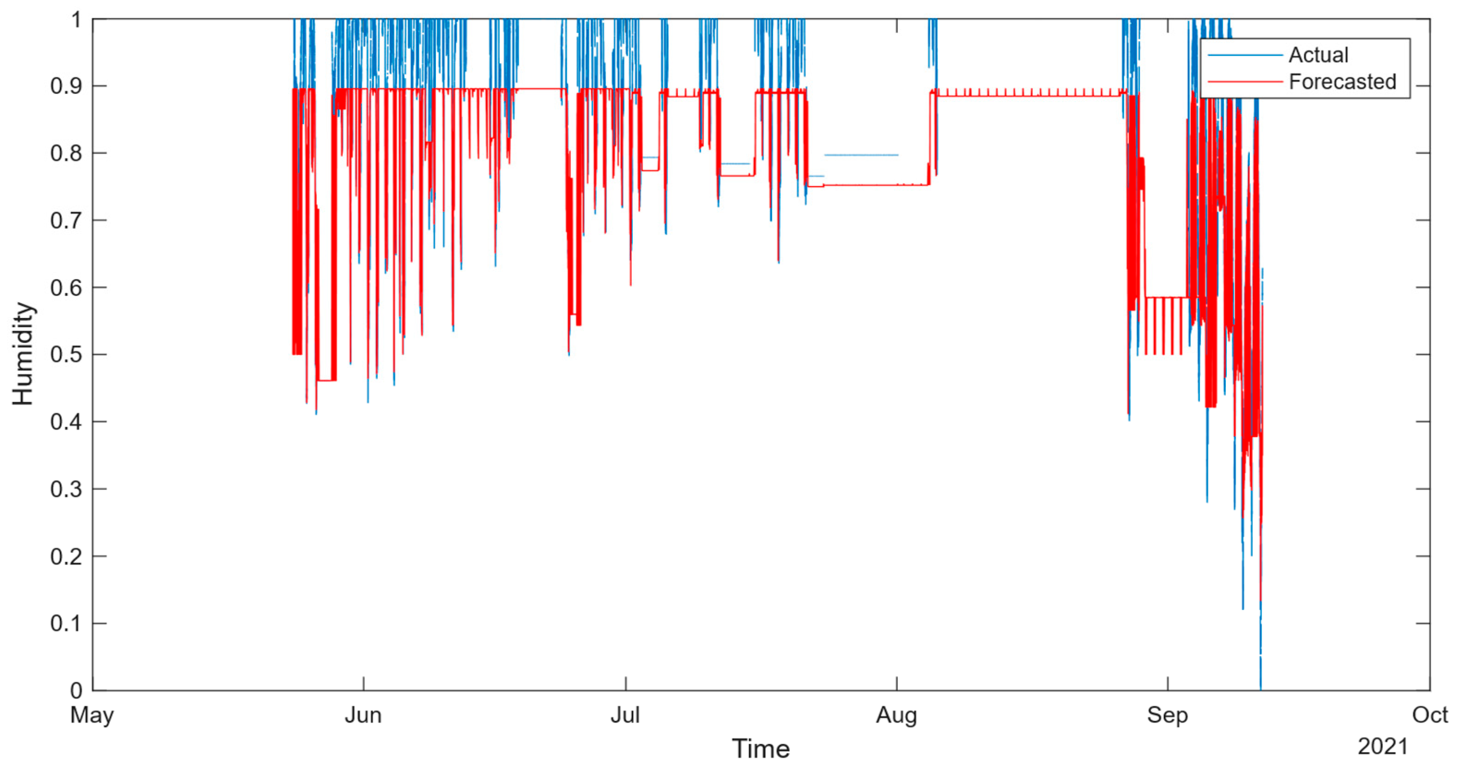 - Velandia, J.B.; Quintana, J.S.C.; Ayala, S.C.V. Environment Humidity and Temperature Prediction in Agriculture Using Mamdani Inference Systems. Int. J. Electr. Comput. Eng. (IJECE) 2021, 11, 3502–3509. [Google Scholar] [CrossRef]