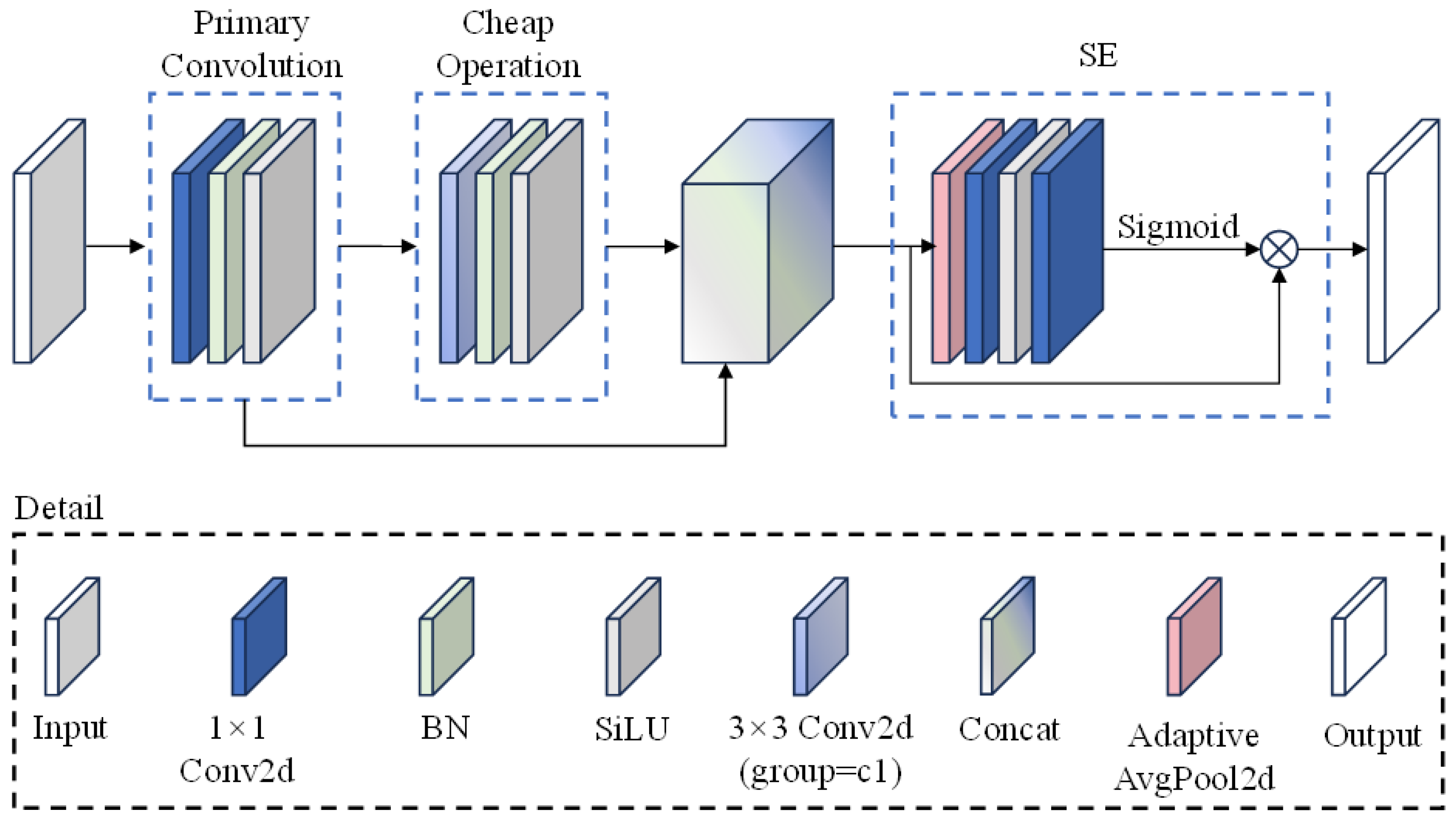 2.3. Lightweight Ghost Convolution Optimization Module with SE Attention Integration