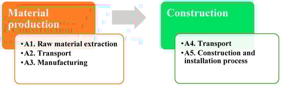 According to the EN 15804+A2 standard, the greenhouse structure can be evaluated throughout modules A1–A5, which cover material production and construction. The levels B1–B7 and levels C1–C4 were excluded from the life cycle assessment of the greenhouse construction.