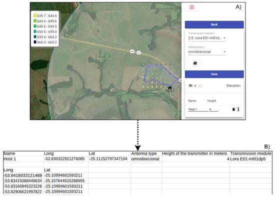 Transmitter Planning Interface (A) and information from the CSV File Containing the IoT Network Planning (B). *—required.