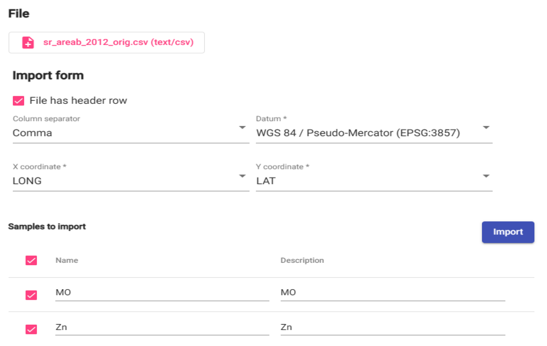 Screenshot of the front end displaying the application’s interface with field survey data.