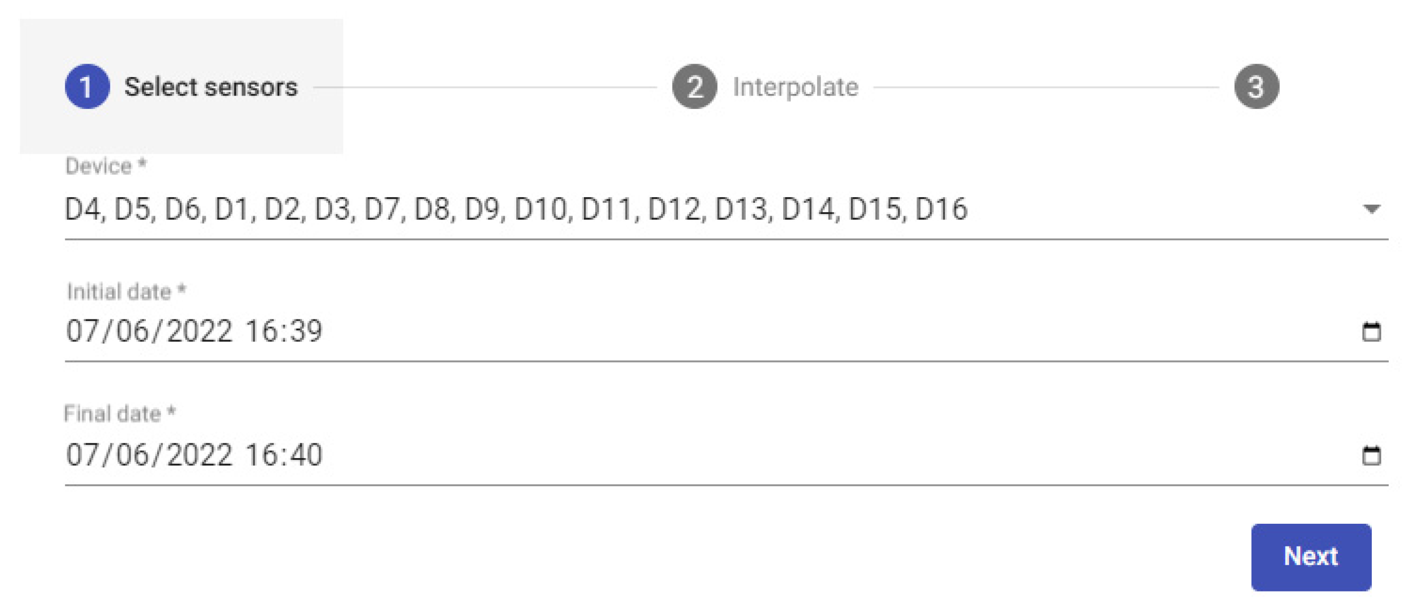 This module presents data collected by sensors, grouped by type. Three monitoring methods are available: (1) real-time display of the latest sensor readings; (2) generation of time-series graphs for a user-specified interval; and (3) generation of thematic maps using interpolation methods (IDW or Ordinary Kriging) available from the ADB-API.