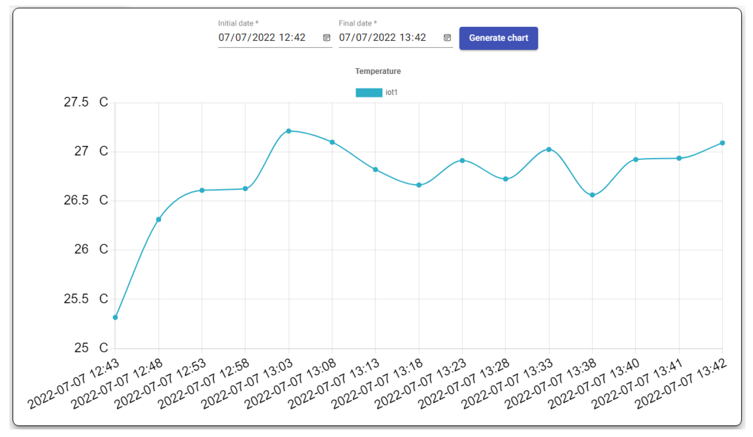 Graph of the temperature sensor for the IoT device installed in the study area at the agrometeorological station, Kate 3.0. *—required.