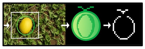 CNN-based object detection algorithms are generally divided into two categories: one-stage and two-stage detectors. The advent of one-stage detectors, exemplified by the YOLO algorithm, has signified a substantial advancement in this domain [15]. These detectors process the image in its entirety during a solitary forward pass, ensuring expeditiousness and efficiency. In contrast, two-stage detectors, such as the Faster Regional Convolutional Network (Faster R-CNN) [16], initially generate candidate object regions before refining the detection in a subsequent stage. Given the pervasive utilization of the YOLO model for fruit detection, researchers have proposed modifications to specific crops such as mango [17], oranges [18], tomatoes [19], and strawberries [20]. The purpose of these adaptations is to address the specific challenges posed by different crops. The focus is on improving detection accuracy, particularly for small objects. A comparison of CV deep learning-based methods with conventional techniques and experimental analyses for determining fruit reveals higher detection efficiency without the necessity of costly and labor-intensive experimental processes. However, as far as we are aware, most existing methods, while capable of accurately detecting melons, rely on experimental techniques that measure specific attributes of the fruit’s shape and color.