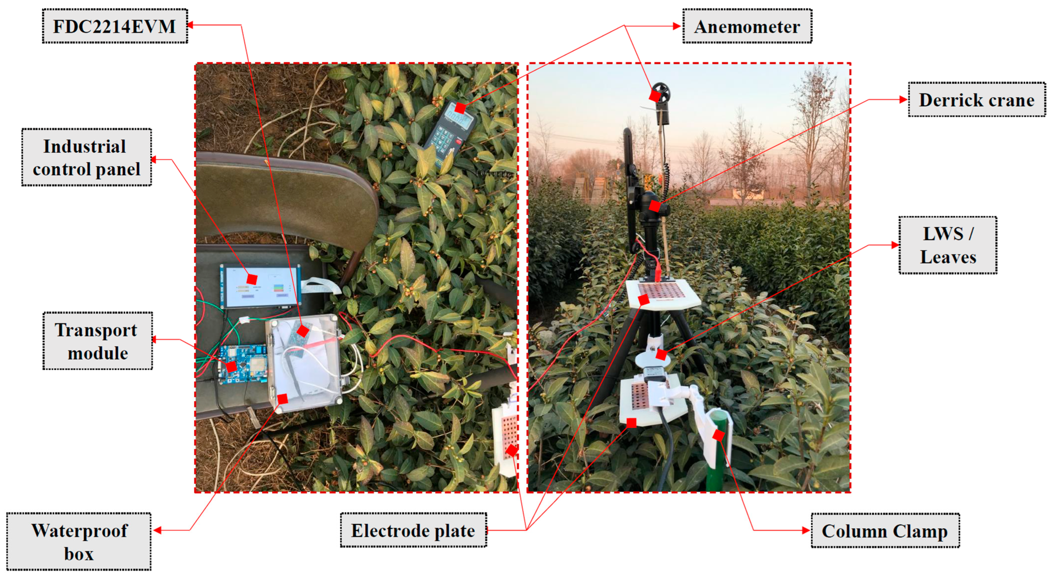 - Cardamis, M.; Jia, H.; Qian, H.; Chen, W.; Yan, Y.; Ghannoum, O.; Hu, W. Leafeon: Towards Accurate Sensing of Leaf Water Content for Protected Crop, with mm Wave Radar. IEEE Internet Things J. 2025, 12, 19646–19659. [Google Scholar] [CrossRef]