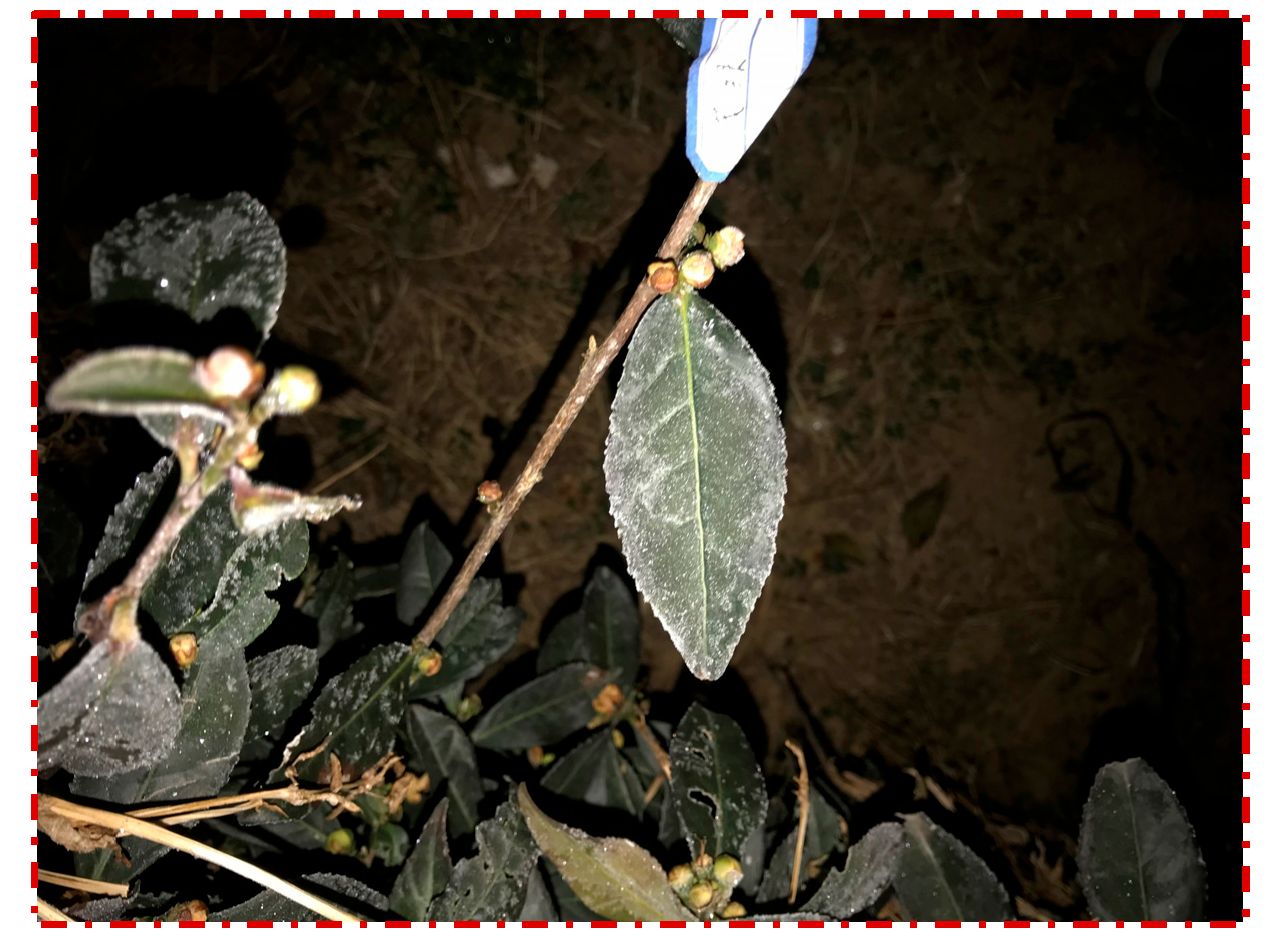 - The leaf was then placed indoors. After the frost layer completely melted and evaporated, the leaf’s self-weight Mleaf was measured again.