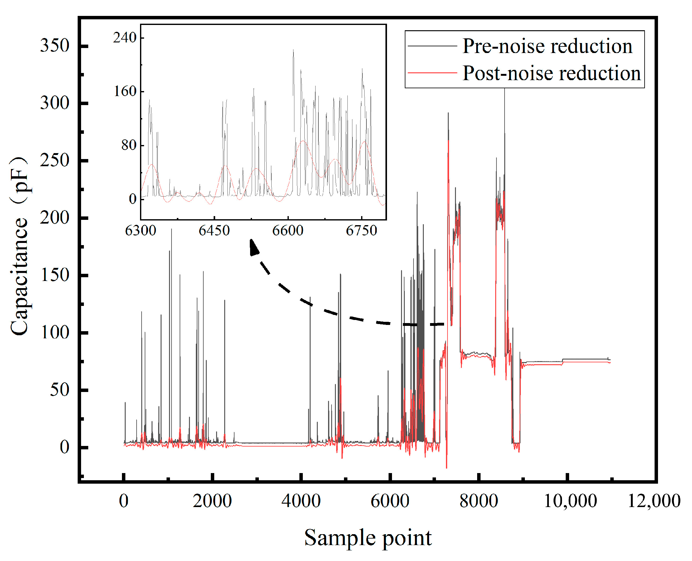 - Denoise the capacitive time-series data using the SWT method, which primarily consists of three sub-steps: Continuous Wavelet Transform (CWT), instantaneous frequency acquisition, and compression and reconstruction.