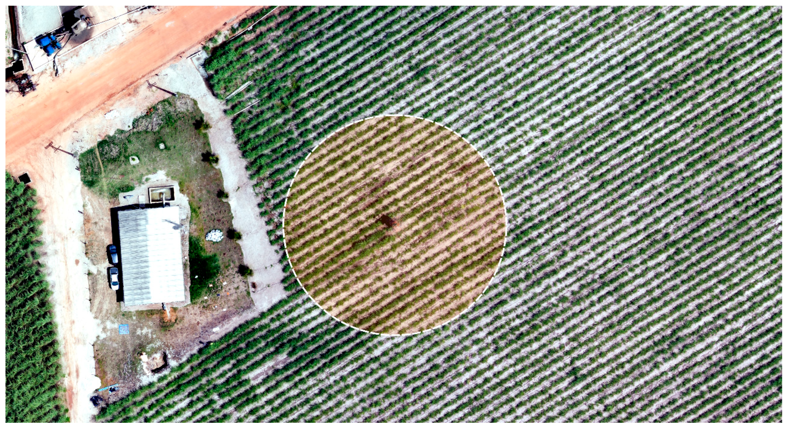 - de Lima, G.S.A.; Ferreira, M.E.; Sales, J.C.; de Souza Passos, J.; Maggiotto, S.R.; Madari, B.E.; de Melo Carvalho, M.T.; de Almeida Machado, P.L.O. Evapotranspiration Measurements in Pasture, Crops, and Native Brazilian Cerrado Based on UAV-Borne Multispectral Sensor. Environ. Monit. Assess. 2024, 196, 1105. [Google Scholar] [CrossRef] [PubMed]