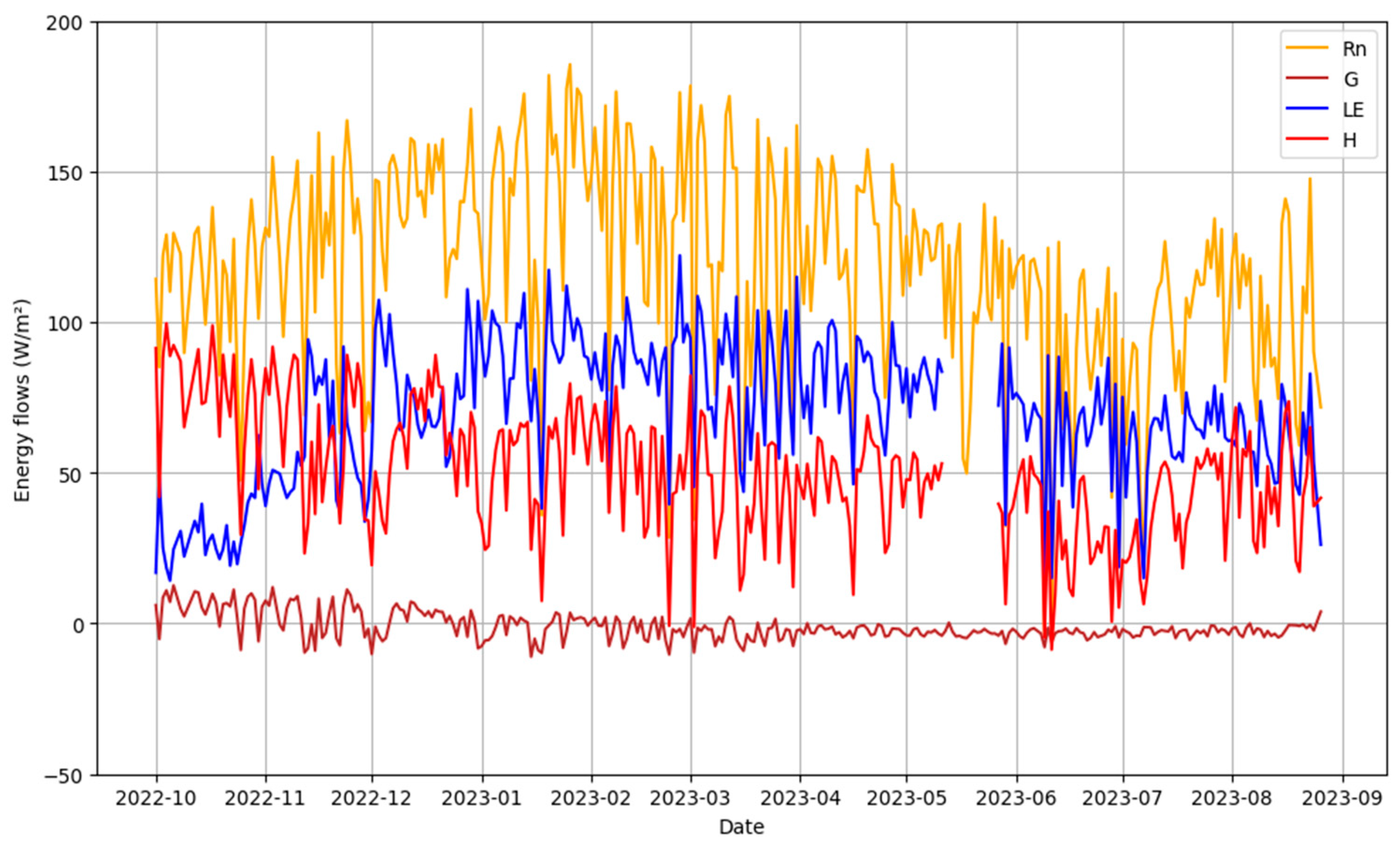 - Band 4: Soil heat flux G (W/m2);