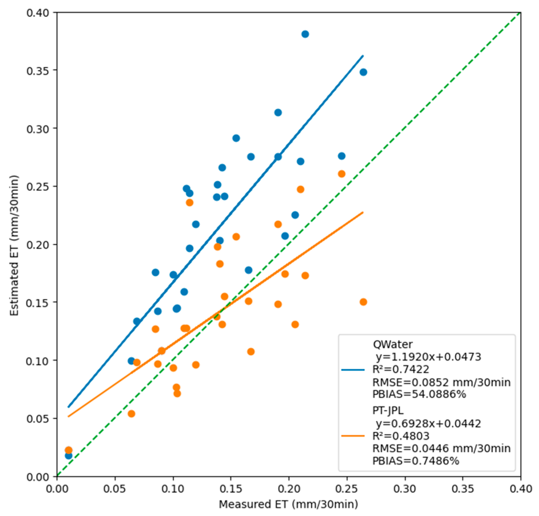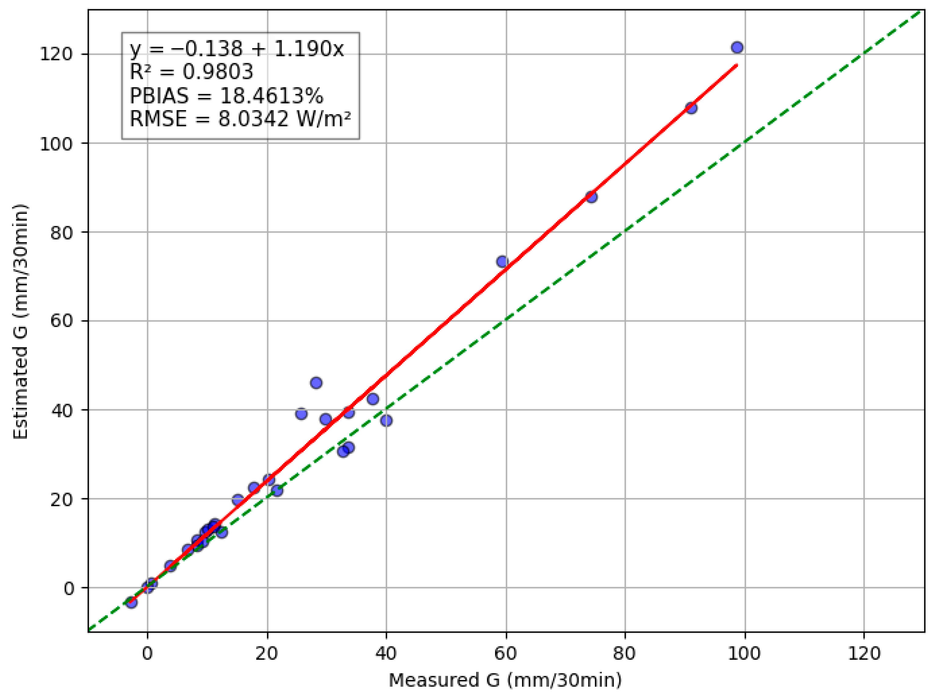 2.4. Priestley–Taylor Jet Propulsion Laboratory Model (PT-JPL) and Model Validation