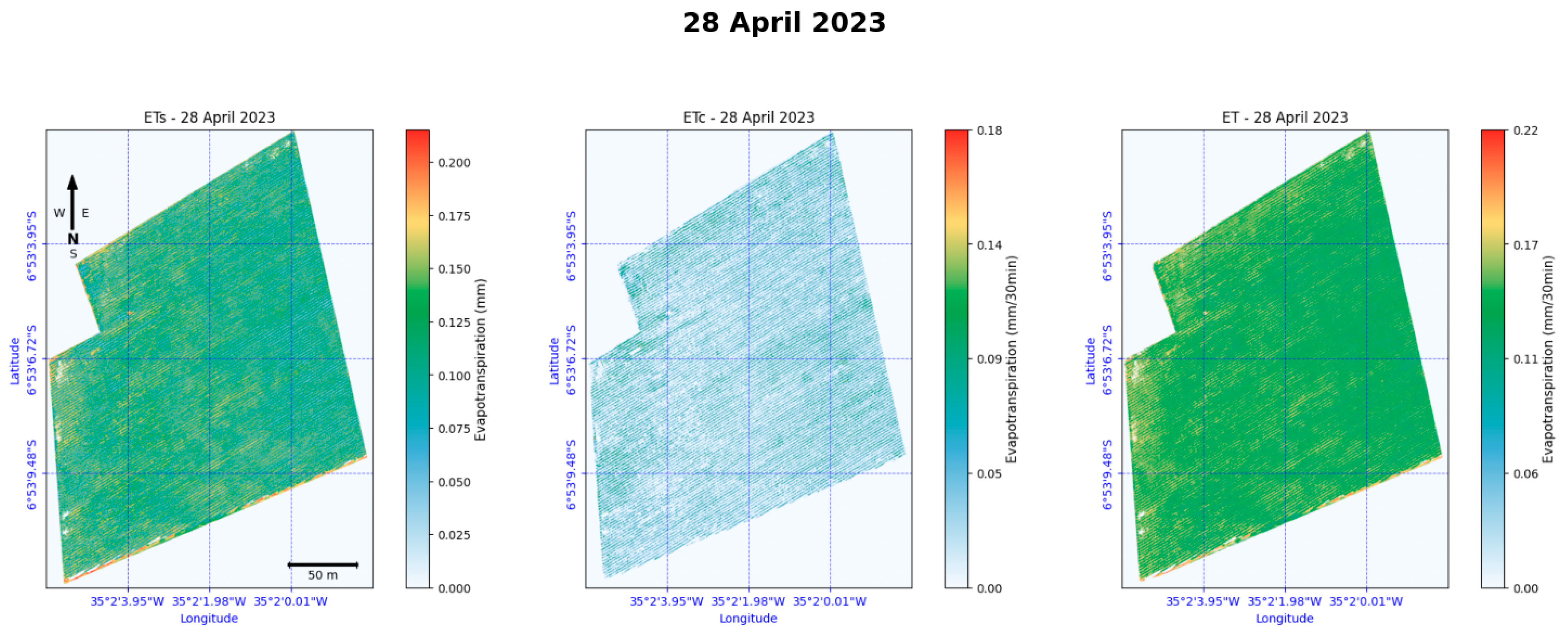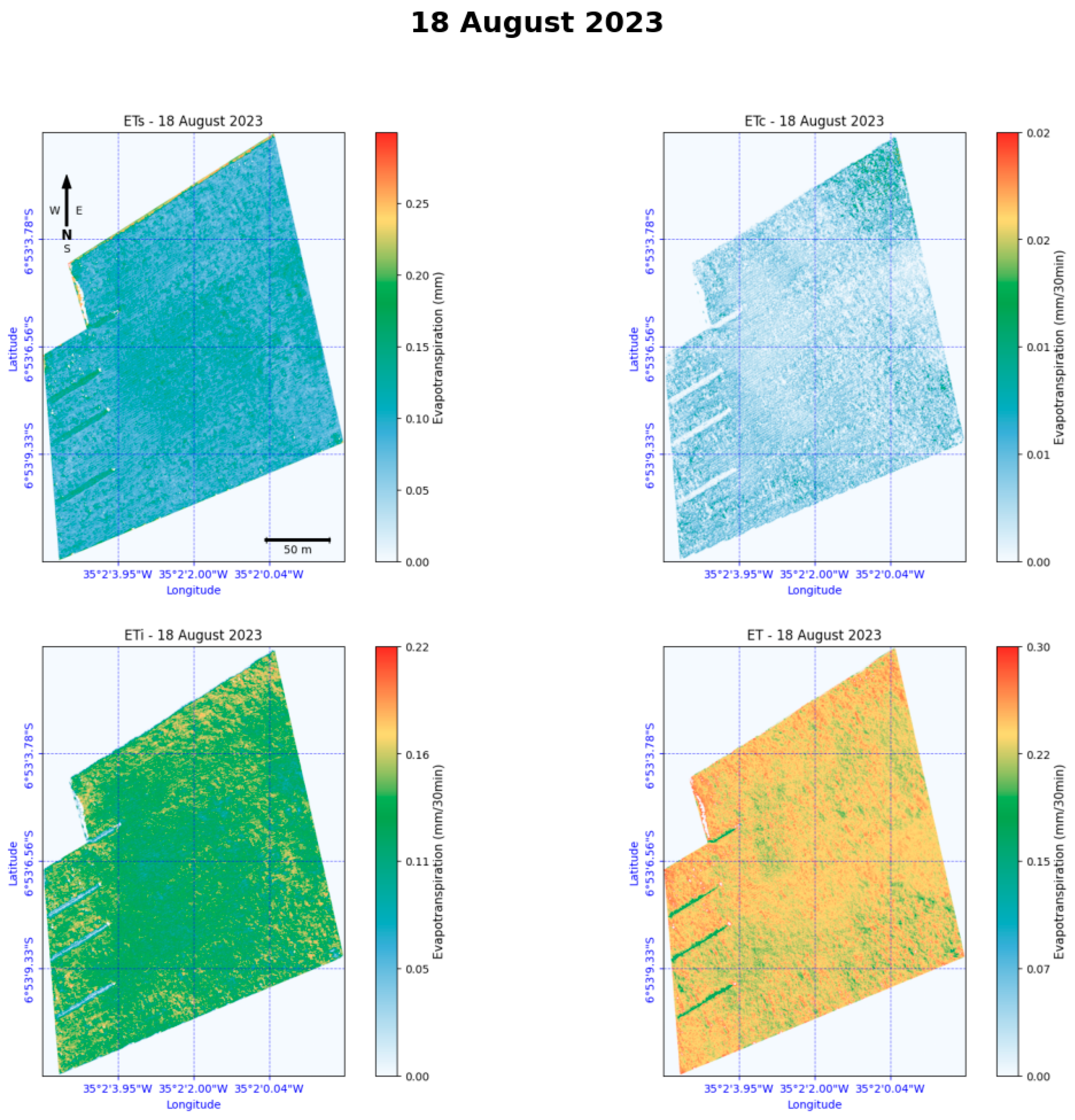 - Band 6: Evapotranspiration ET (kg/time period).