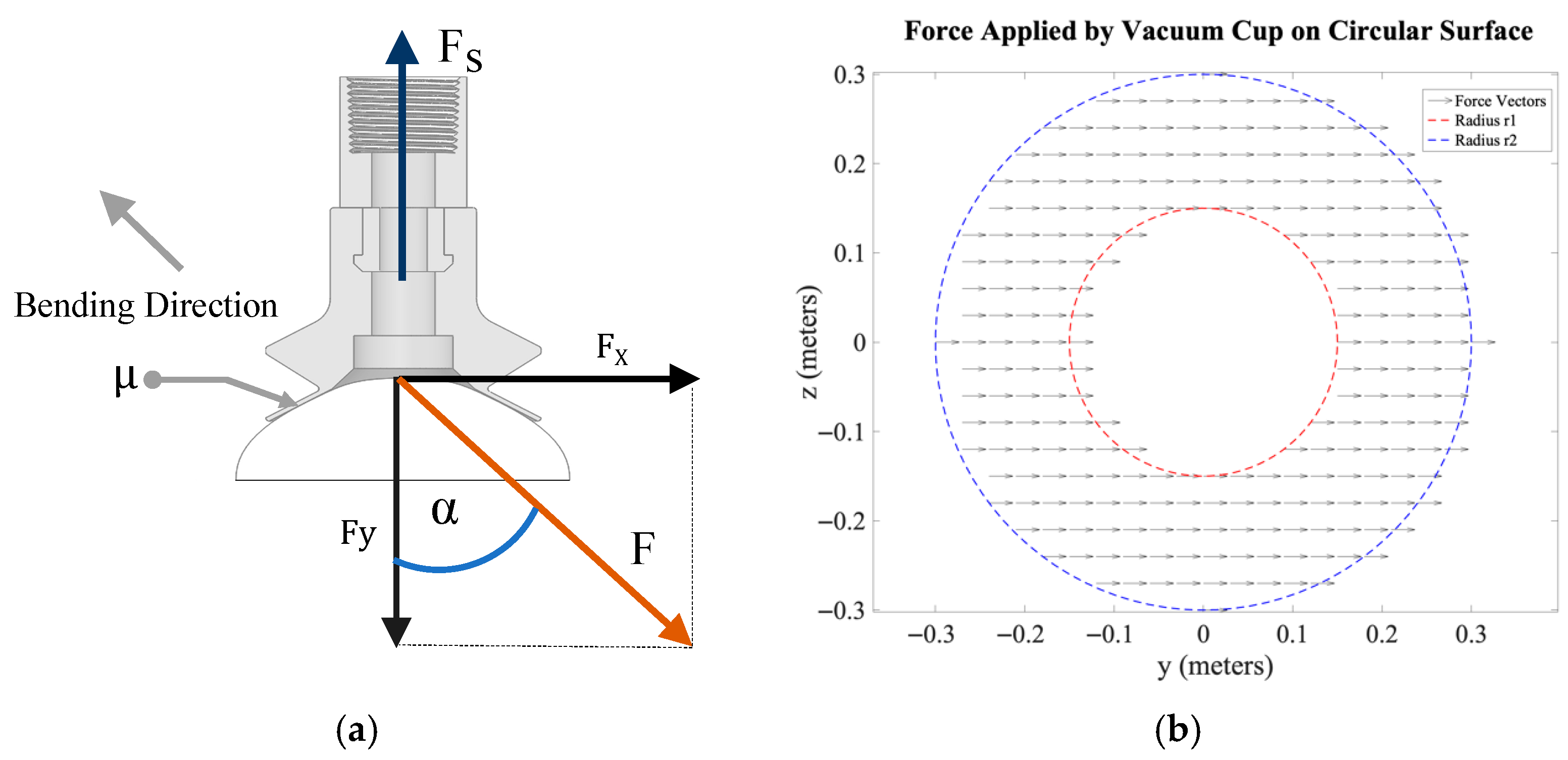 2.2. Suction Force Equation for the Vacuum Cup End-Effector