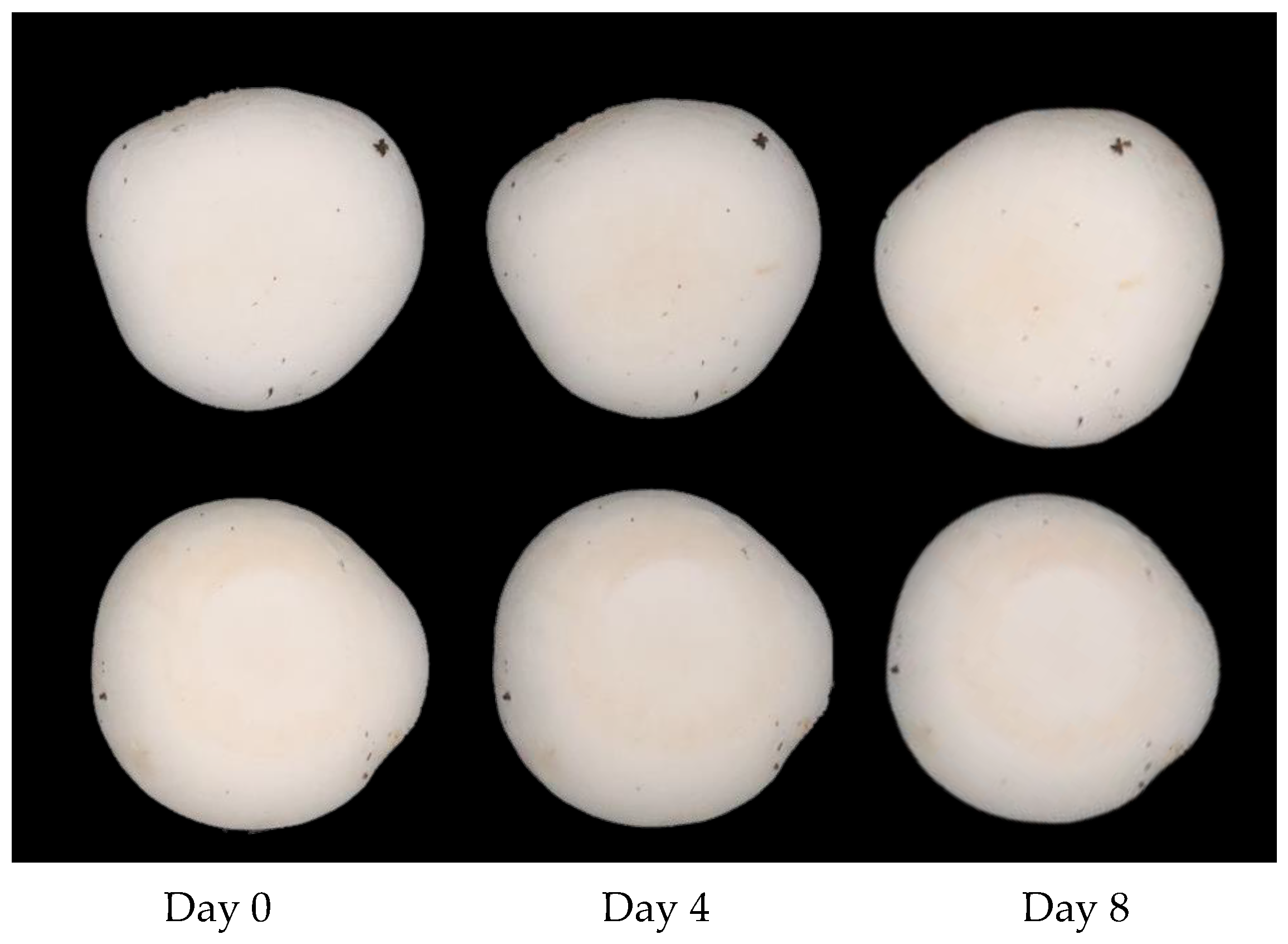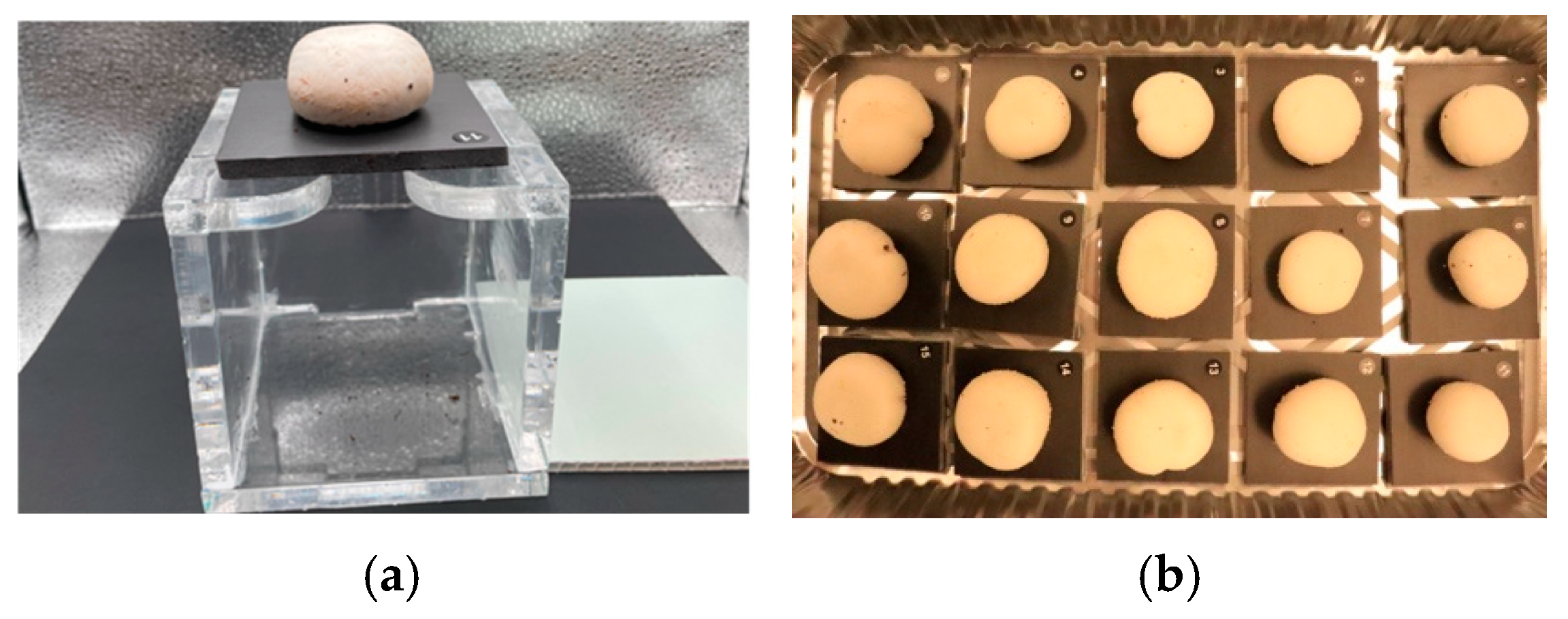 - Weijn, A.; Tomassen, M.; Bastiaan-Net, S.; Wigham, M.; Boer, E.; Hendrix, E.; Baars, J.; Sonnenberg, A.; Wichers, H.; Mes, J. A new method to apply and quantify bruising sensitivity of button mushrooms. Food Sci. Technol. Res. 2012, 47, 308–314. [Google Scholar] [CrossRef]