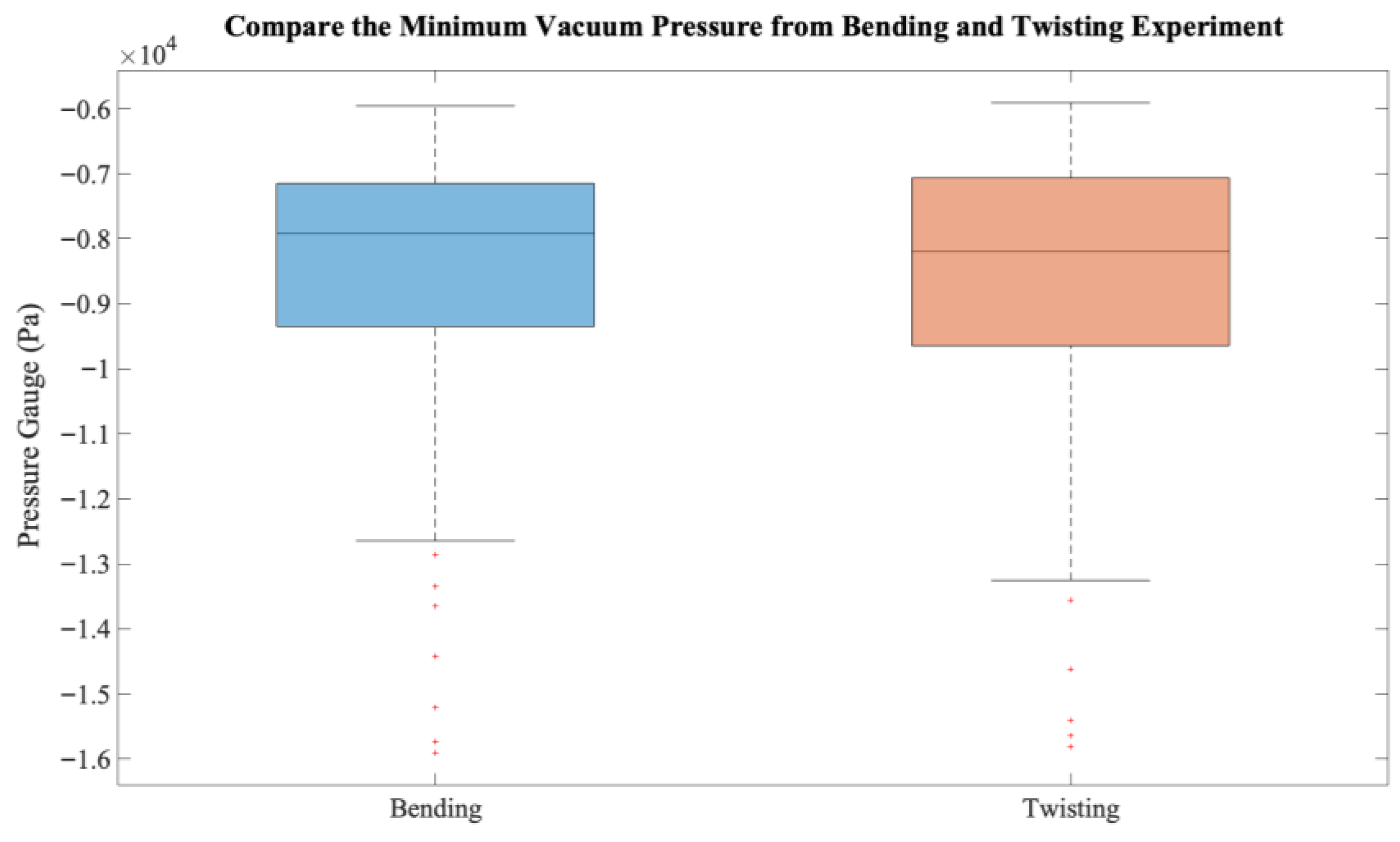 3.4. Comparison of the Minimum Vacuum Pressure for Bending and Twisting