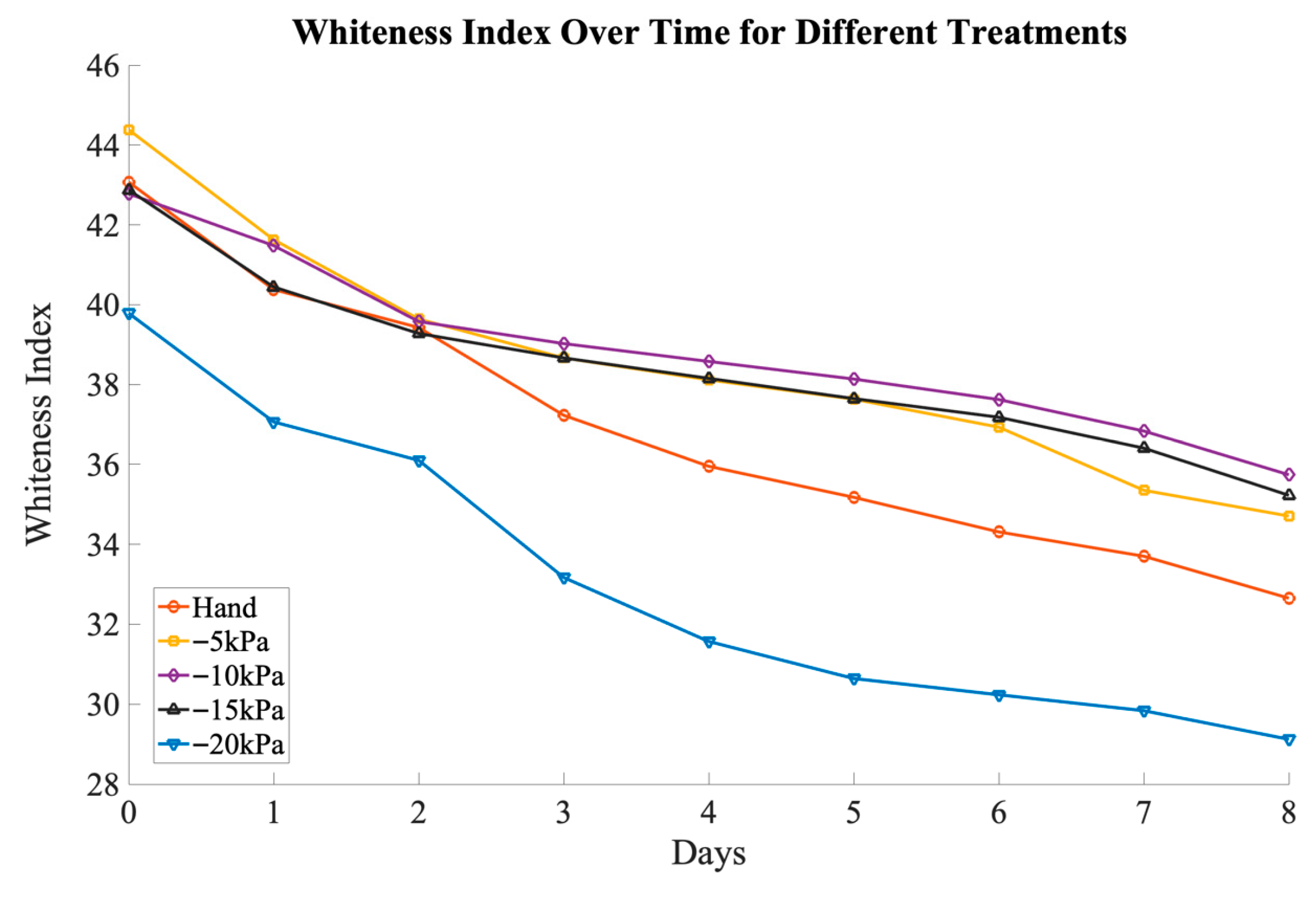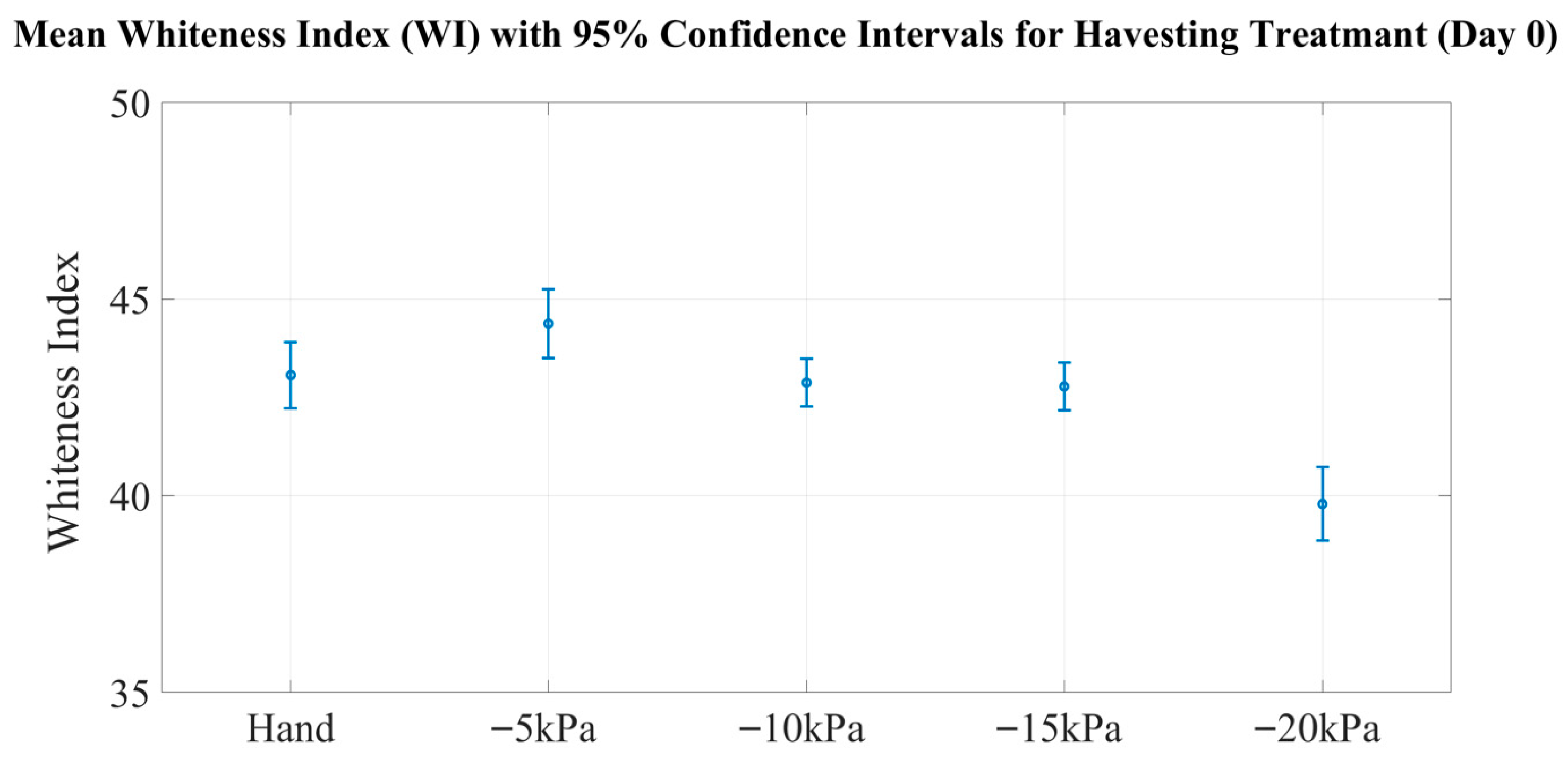 3.6. Whiteness Index Evaluation
