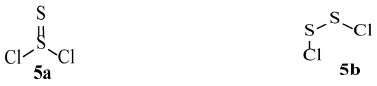 The assumed Lewis structure of sulphur monochloride at the time of the investigation by Bezzubets and Rozina, 5a [27] and the currently accepted Lewis structure of disulfur dichloride, 5b [28].