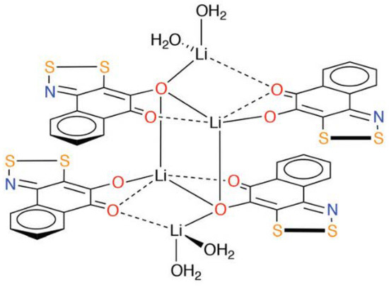 - Tuttle, M.R.; Zhang, S. Bisthiazolyl Quinones: Stabilizing Organic Electrode Materials with Sulfur-Rich Thiazyl Motifs. Chem. Mater. 2020, 32, 255–261. [Google Scholar] [CrossRef]