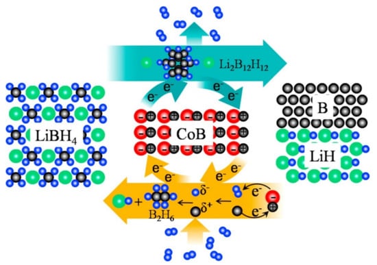 Schematic illustration of dehydrogenation and rehydrogenation mechanism of CoB-catalyzed LiBH4 [125]. (Reprinted with permission from Elsevier).