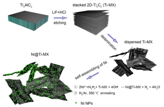 Schematic illustrations of the synthetic strategy applied for the Ni@Ti-MX catalyst [167]. (Reprinted with permission from American Chemical Society.)