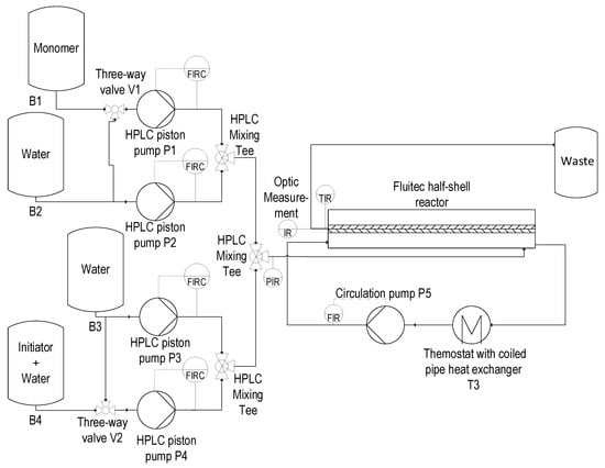 Figure 3. Simplified flow sheet of the experimental setup with the Fluitec ContiPlant half-shell reactor.