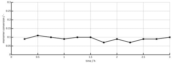 During the first three hours, additional HPLC measurements were performed, which are shown in Figure 8 and demonstrate that the conversion remains constant during this time. This suggests that the increase in extinction is due to an increased concentration of product in front of the probe. An increased product concentration can, in turn, be interpreted as fouling in the reactor.
