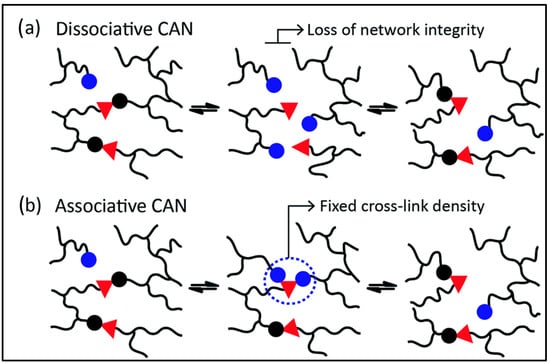 - Kloxin, C.J.; Scott, T.F.; Adzima, B.J.; Bowman, C.N. Covalent Adaptable Networks (CANs): A Unique Paradigm in Cross-Linked Polymers. Macromolecules 2010, 43, 2643–2653. [Google Scholar] [CrossRef]