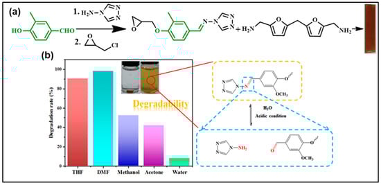 - Mo, R.; Song, L.; Hu, J.; Sheng, X.; Zhang, X. An acid-degradable biobased epoxy-imine adaptable network polymer for the fabrication of responsive structural color film. Polym. Chem. 2020, 11, 974–981. [Google Scholar] [CrossRef]