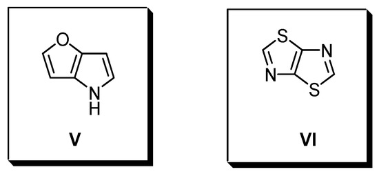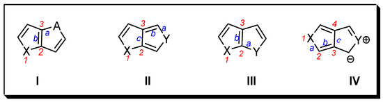 - Ramsden, C.A. Mesomeric betaine derivatives of heteropentalenes. Tetrahedron 1977, 33, 3193–3202. [Google Scholar] [CrossRef]