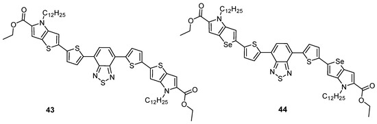 - Gamage, P.L.; Gedara, C.M.U.; Ma, Z.; Bhadran, A.; Gunawardhana, R.; Biewer, H.C.; Stefan, M.C. Incorporation of selenopheno[3,2-b]pyrrole into benzothiadiazole-based small molecules for organic field effect tranzistors. ACS Appl. Electron. Mater. 2021, 3, 5335–5344. [Google Scholar] [CrossRef]
