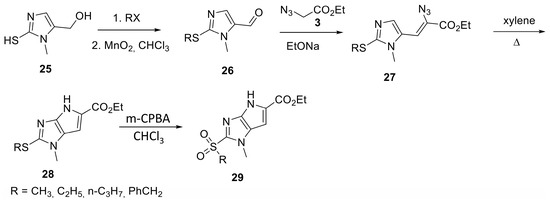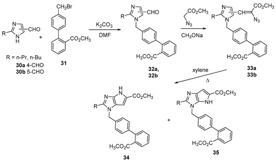 - Shafiee, A.; Mojarrad, J.S.; Jalili, M.A.; Adhami, H.R.; Hadizadeh, F. Syntheses of substituted pyrrolo[2,3-d]imidazole-5-carboxylates and substitued pyrrolo[3,2-d]imidazole-5-carboxylates. J. Heterocycl. Chem. 2002, 39, 367–373. [Google Scholar] [CrossRef]