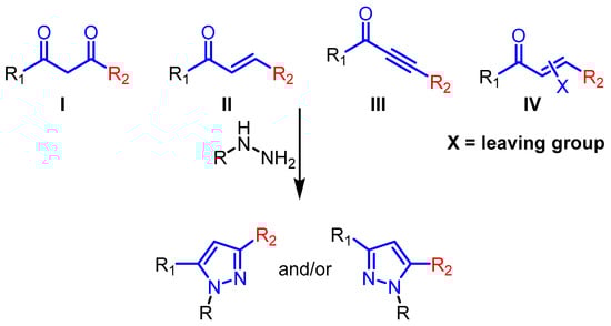 2.1. Cyclocondensation of Hydrazine and Its Derivatives on 1,3-Difunctional Systems