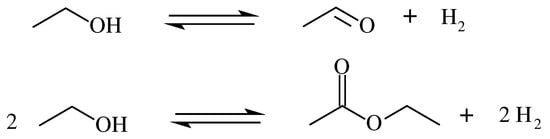 - Santacesaria, E.; Carotenuto, G.; Tesser, R.; Di Serio, M. Ethanol dehydrogenation to ethyl acetate by using copper and copper chromite catalysts. Chem. Eng. J. 2012, 179, 209–220. [Google Scholar] [CrossRef]